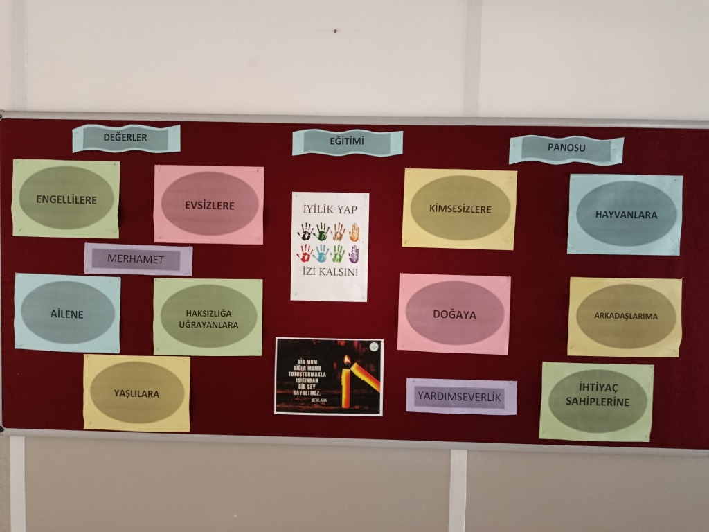 Değerler Eğitimi kapsamında Değerler Eğitimi Komisyonu tarafından ''Yardımseverlik'' temalı pano çalışması gerçekleştirildi.
